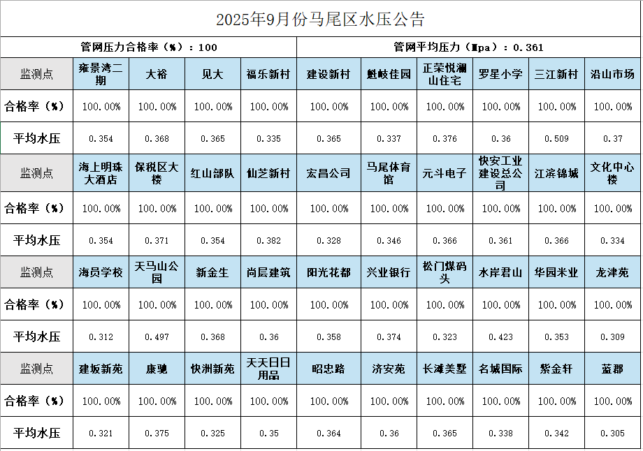 2025年10月份馬尾區水壓公告